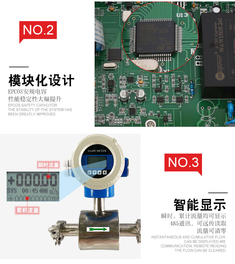 傳感器將感應(yīng)電勢E作為流量信號,傳送到轉(zhuǎn)換器,經(jīng)放大,變換濾波用一系列的數(shù)字處理后,用帶背光的點陣式液晶顯示瞬時流量和累積流量。轉(zhuǎn)換器有4~20mA輸出,報警輸出及頻率輸出,并設(shè)有RS-485等通訊接口,并支持HART和MODBUS協(xié)議。