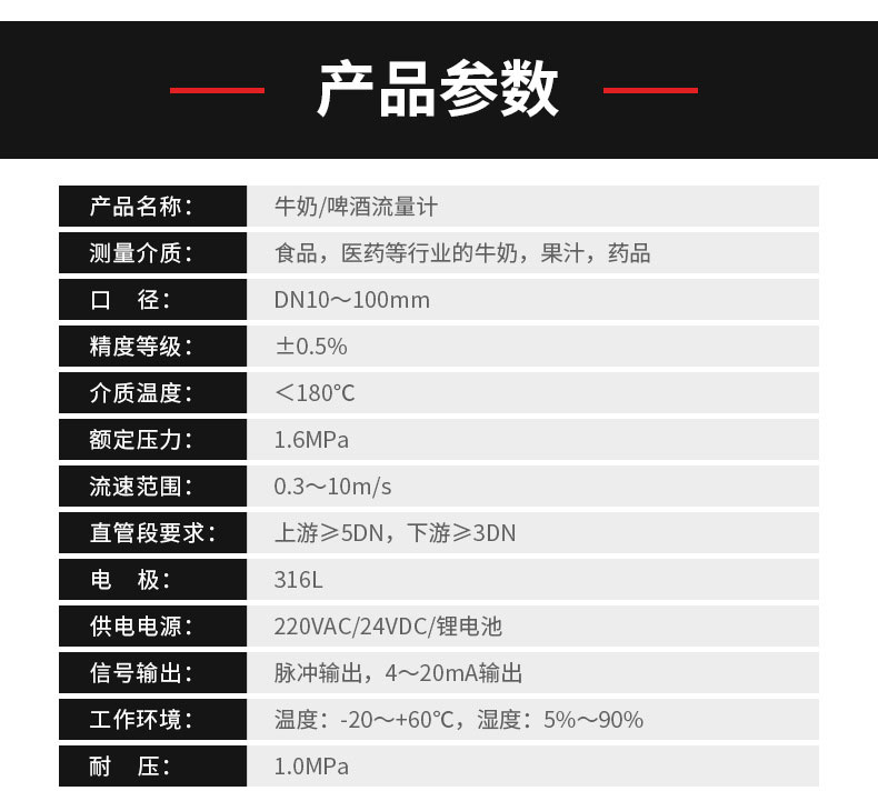 衛(wèi)生型電磁流量計在食品、醫(yī)藥等衛(wèi)生行業(yè),其工藝過程往往需要定期使用高溫蒸汽進(jìn)行清洗消毒,并且包括流量計傳感器在內(nèi)的管線接頭部位不能有殘留的介質(zhì),以防止細(xì)菌繁殖,因此衛(wèi)生行業(yè)管道與流量計連接一般采用快速接頭形式,即卡箍型結(jié)構(gòu)。**地應(yīng)用于化工、環(huán)保、冶金、食品、醫(yī)藥、造紙、給排水等行業(yè)。