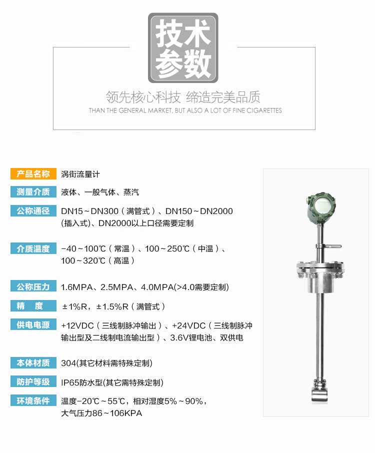 插入式渦街流量計**適用于石油、化工、冶金、熱力、紡織、造紙等行業對過熱蒸汽、飽和蒸汽、壓縮空氣和一般氣體(氧氣、氮氣氫氣、天然氣、煤氣等) 、水和液體(如:水、汽油、酒精、苯類等)的計量和控制。