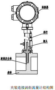 法蘭卡裝型渦街流量計的基本結(jié)構(gòu)主要是由表體、探頭、旋渦發(fā)生體、表桿和轉(zhuǎn)換器等組成。