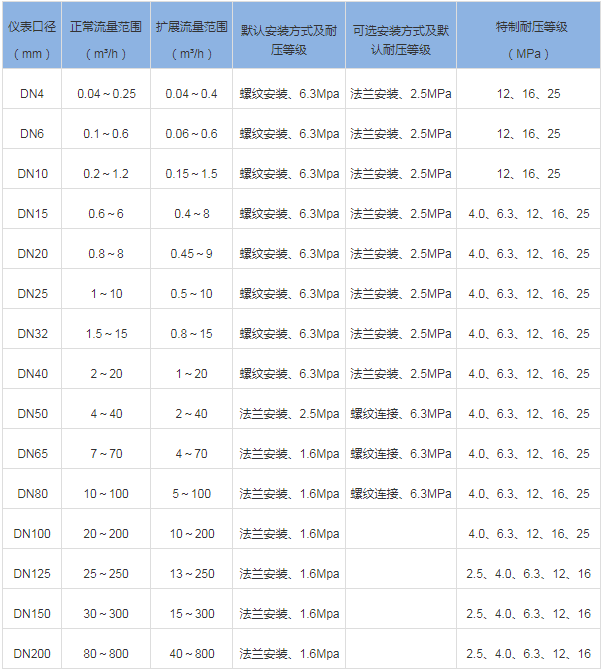 三、小口徑渦輪流量計技術參數