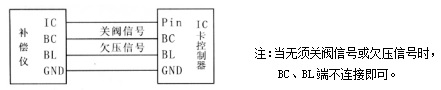 GND — 補償儀內部電路地(電池負極); IC — 定標脈沖輸出(至IC卡控制器)