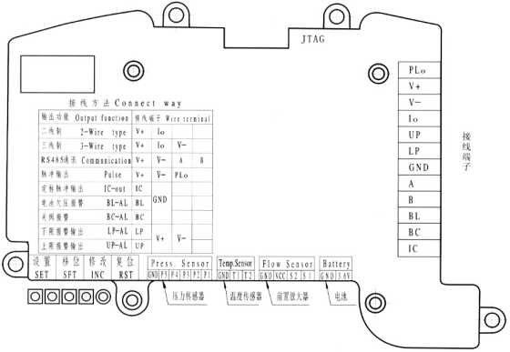 表頭內按鍵參數設置:翻開前蓋,在表頭組件左下角上可見按鍵排列如下圖。