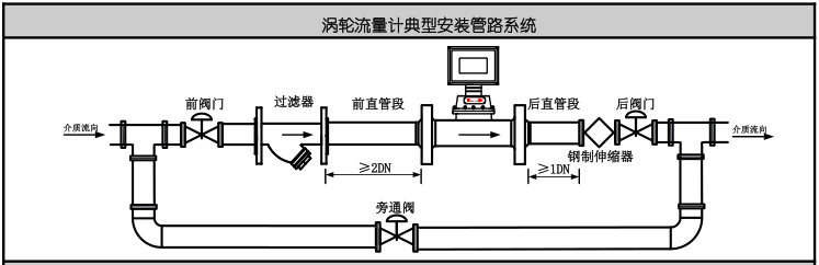 4、渦輪番量計受流場散布影響較大,因而對入口無整流器的流量計應(yīng)按請求對傳感器的上下游側(cè)設(shè)置直管段,對入口設(shè)計有整流器的流量計也應(yīng)按運(yùn)用闡明的請求設(shè)置直管段長度。