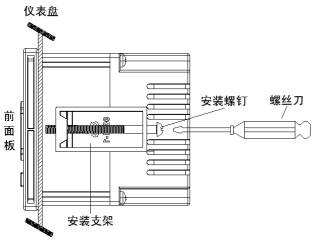 2、用儀表所帶的安裝支架如上圖所示安裝(儀表左右兩側(cè)各安裝一個(gè)支架,儀表盤安裝支架所用螺絲是M4標(biāo)準(zhǔn)螺絲)。